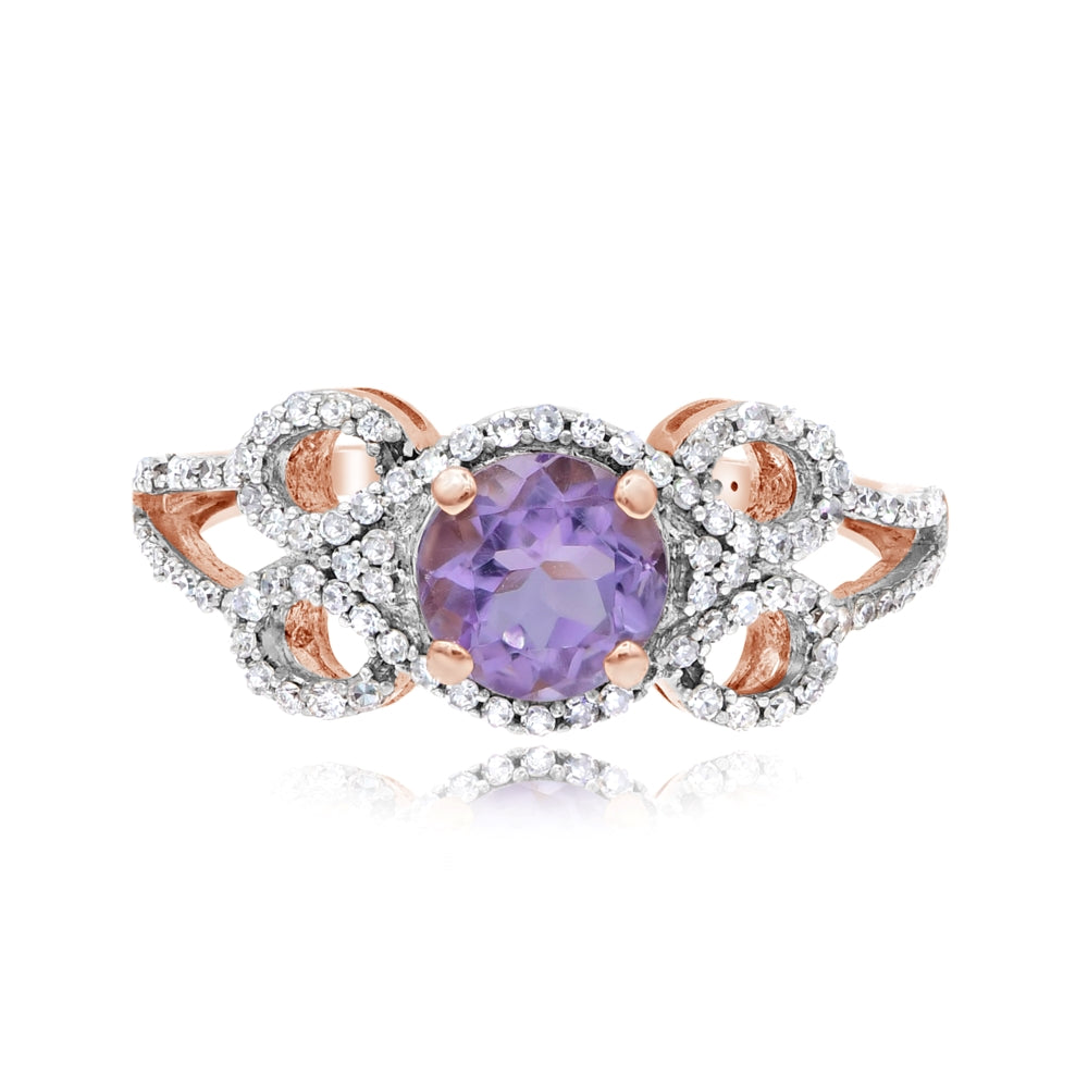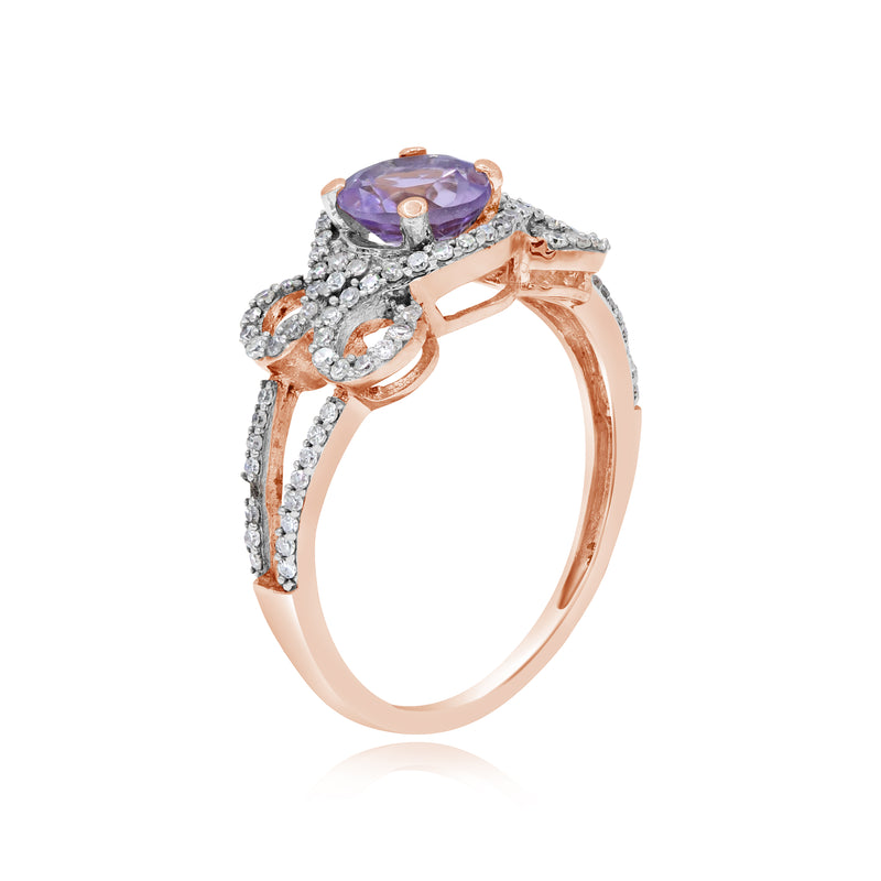 1.05 ct Pink Amethyst & Diamond 14K Rose Gold Floral Petal Vine Scroll Halo Ring