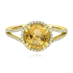 1.54 ct Yellow Citrine & Diamond 14K Yellow Gold Split Shank Halo Ring