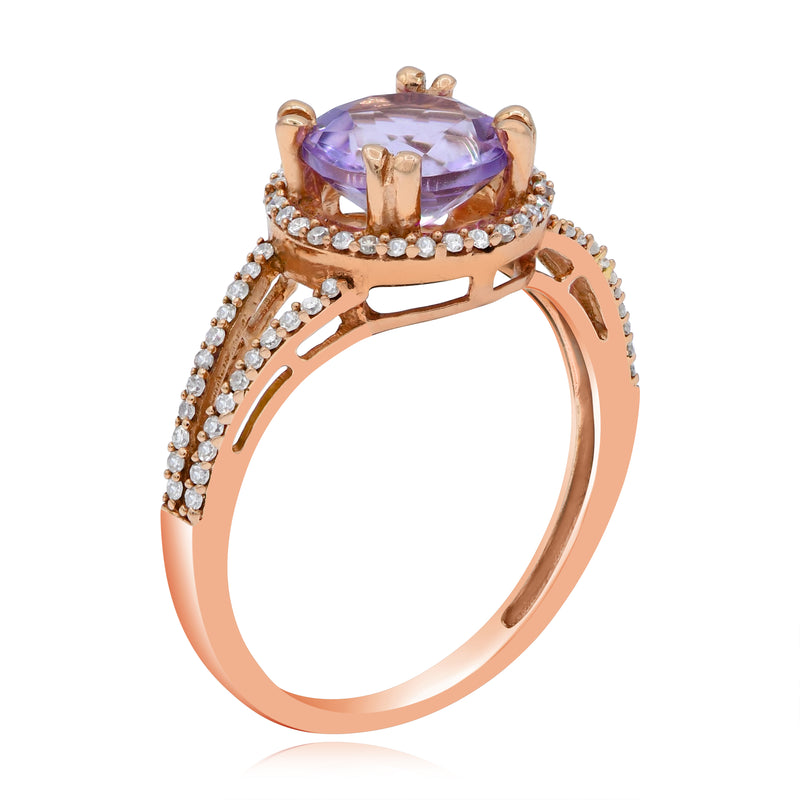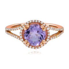 1.67 ct Pink Amethyst & Diamond 14K Rose Gold Split Shank Halo Ring