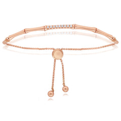 0.15 ct. Diamond 14K Rose Gold Pave Bone Bar Bolo Bracelet