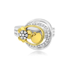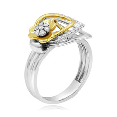 0.19 ct. Diamond 18K Yellow & White Gold 3D Flower Ring