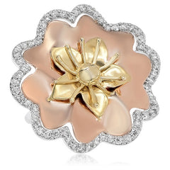 0.57 ct. Diamond 18K Gold Tri Color 3D Flower Sunburst Ring