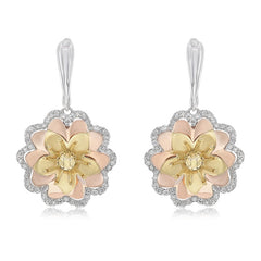 1.14 ct. Diamond 18K Three Tone Gold Affinity Round Floral Charm Earrings