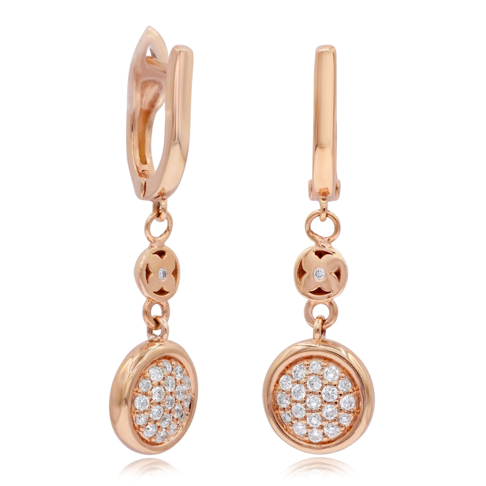 0.34 ct. Diamond 18K Rose Gold Circle Disc Dangle Drop Earrings