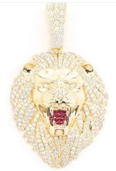 2.62 ct. Diamond & Sapphire 14K Yellow Gold Lion Pendant