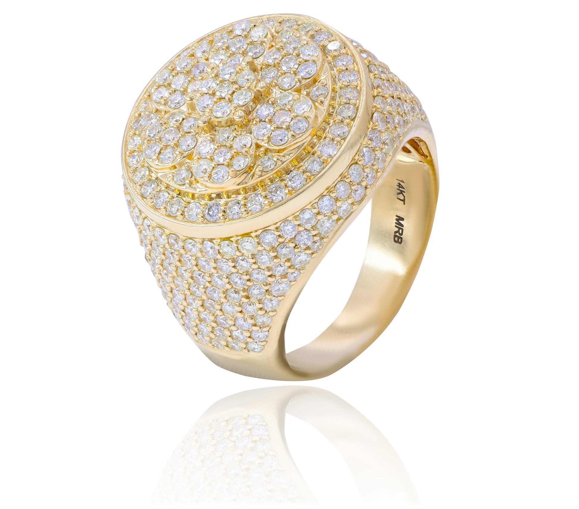 3.71 ct. Diamond 14K Yellow Gold Flower Cluster Iced Out Men's Ring