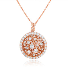 4.11 ct. Diamond 14K Rose Gold Filigree Web Etoile Circular Floating Pendant