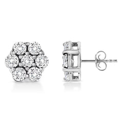 5.34 ct. Diamond 14K White Gold Cluster Flower Diamond Earrings