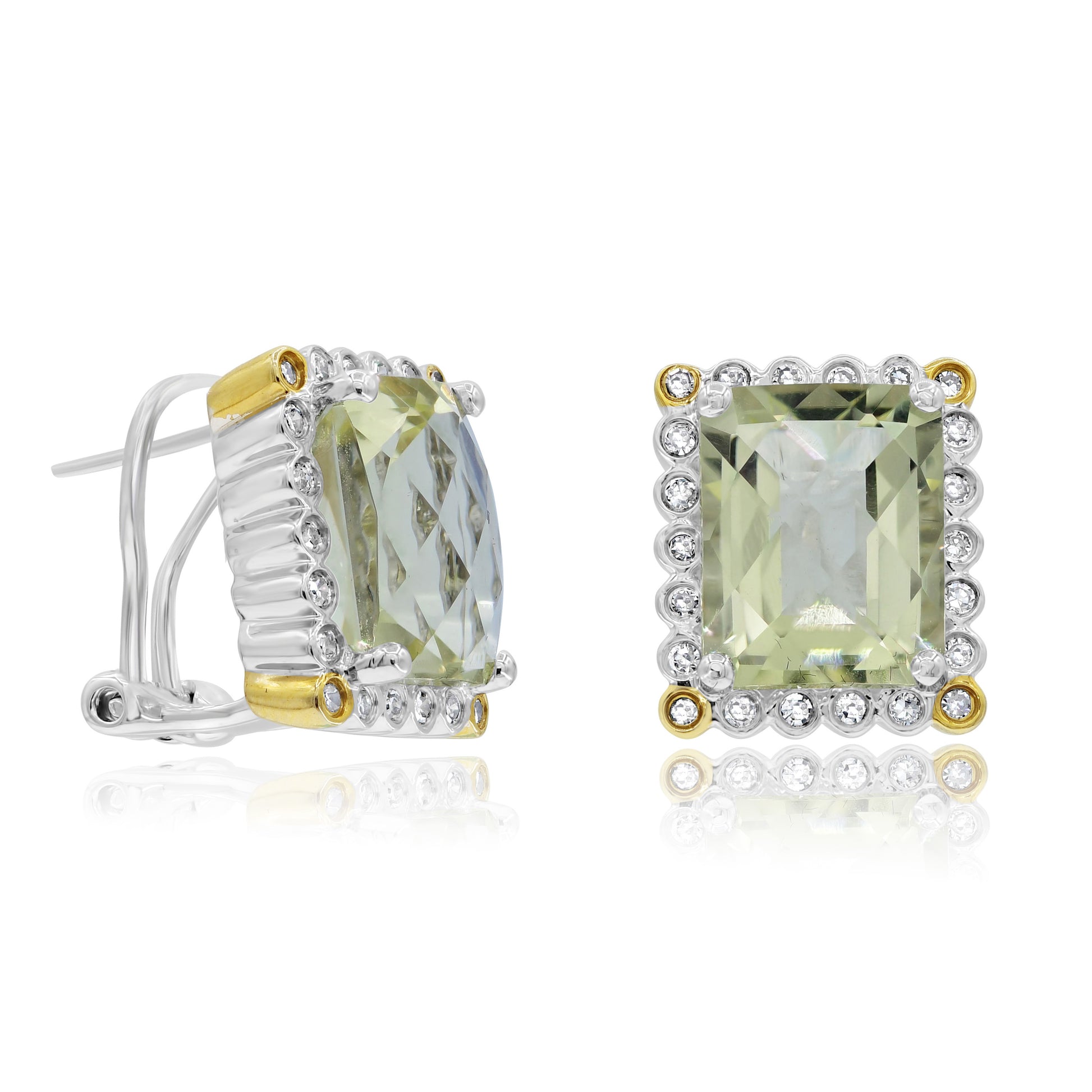 6.86 ct. Quartz & 0.23 ct. Diamond 14K White Gold Earrings
