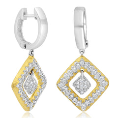 0.65 ct. Diamond 14K Two Tone Gold Square Drop Earrings