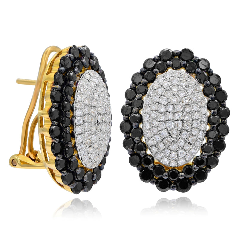 2.96 ct. Black & White Diamond 14K Yellow Gold Earrings
