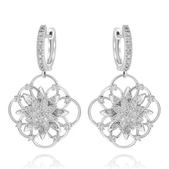0.51 ct. Diamond 14K White Gold Classic Flower Fun Huggie Hanging Earrings