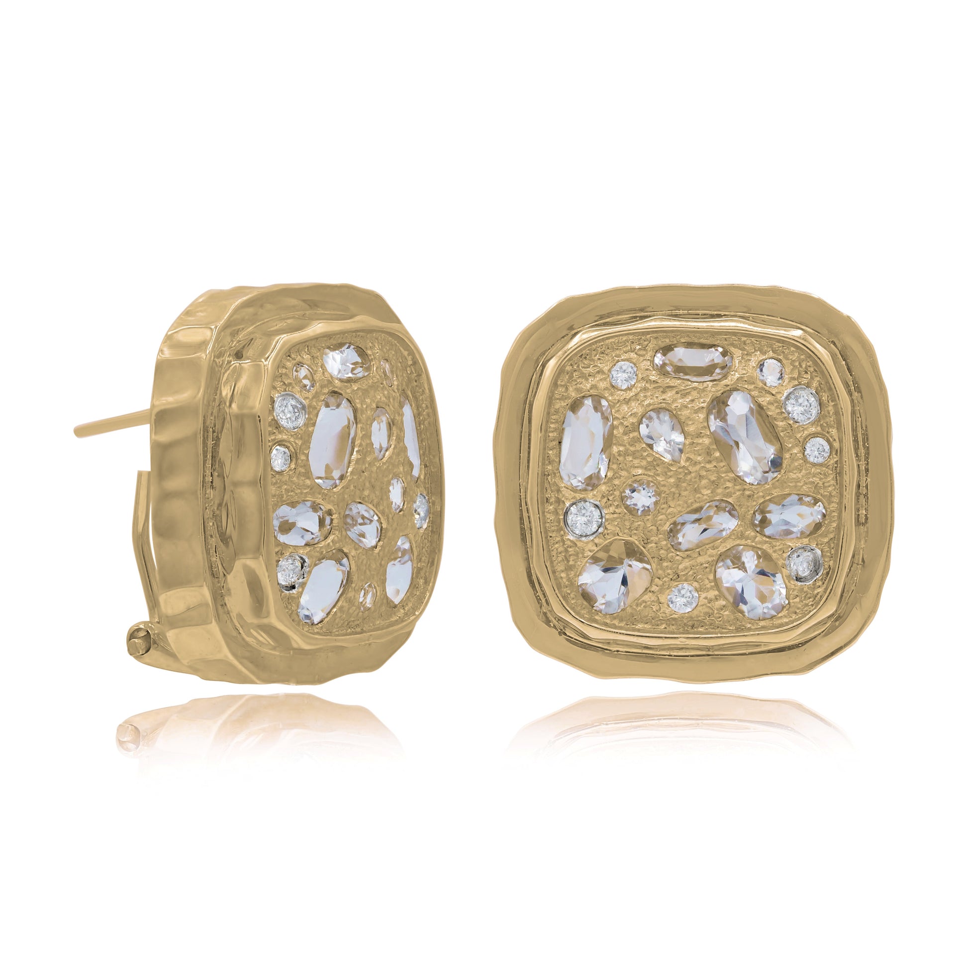 2.61 ct. Crystal & 0.12 ct. Diamond 14K Yellow Gold Square Earrings