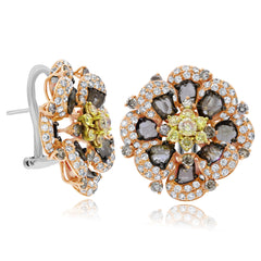 6.05 ct. Ice, Yellow & White Diamond 18K Rose Gold Flower Leverback Earrings