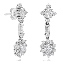 2.25 ct. Diamond 18K White Gold Flower Dangle Earrings