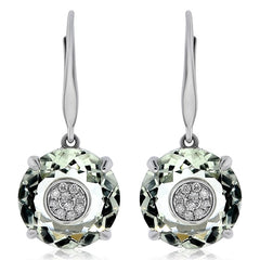 12.4 ct. Amethyst & 0.2 ct. Diamond 14K White Gold Leverback Drop Earrings