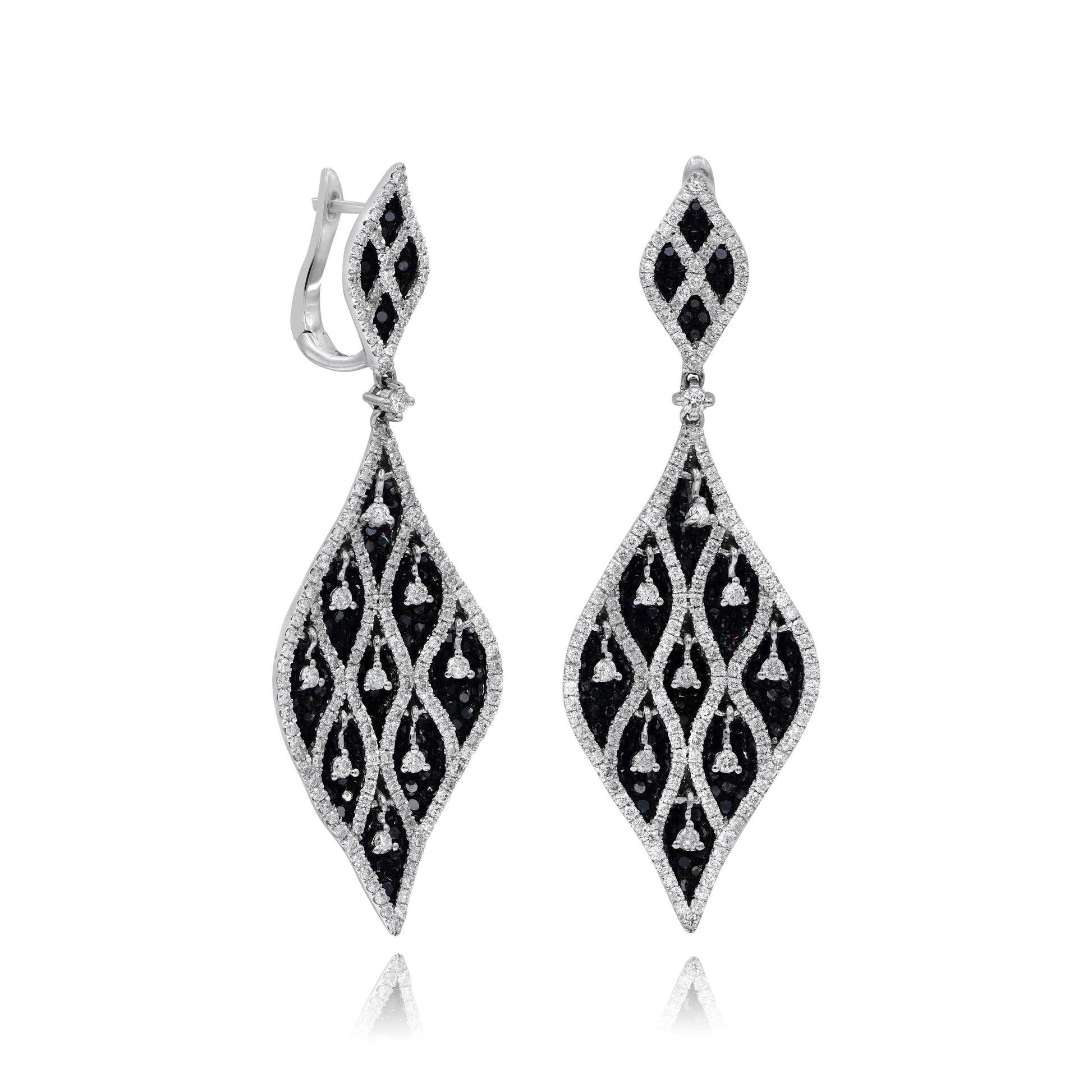 5.5 ct. Black & White Diamond 18K White Gold Dangle Earrings