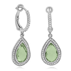 3.85 ct. Green Amethyst & 0.35 ct. Diamond 14K White Gold Drop Earrings