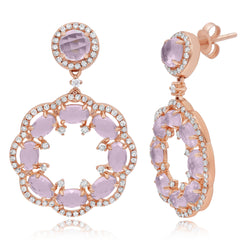 4.24 ct. Purple Quartz & 0.79 ct. Diamond 14K Rose Gold Circular Flower Floating Earrings