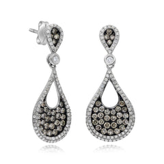 1.32 Brown & White Diamond 14K White Gold Teardrop Dangling Earrings