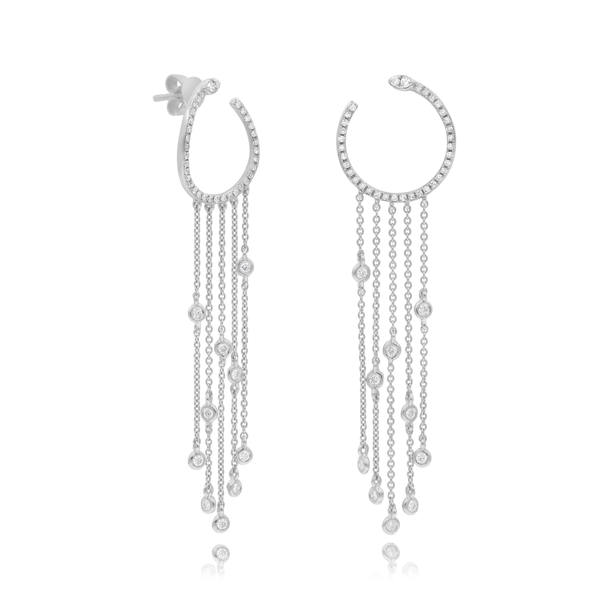 0.44 ct. Diamond 14K White Gold 5 Dangle Chains Stud Earrings