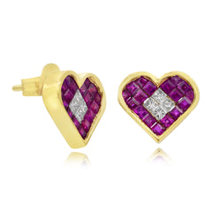 1.05 ct. Ruby & 0.19 ct. Diamond 14K Yellow Gold Heart Stud Earrings