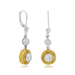 1.69 ct. Yellow & White Diamond 18K Two Tone Gold Circle Frame Cluster Dangle Earrings