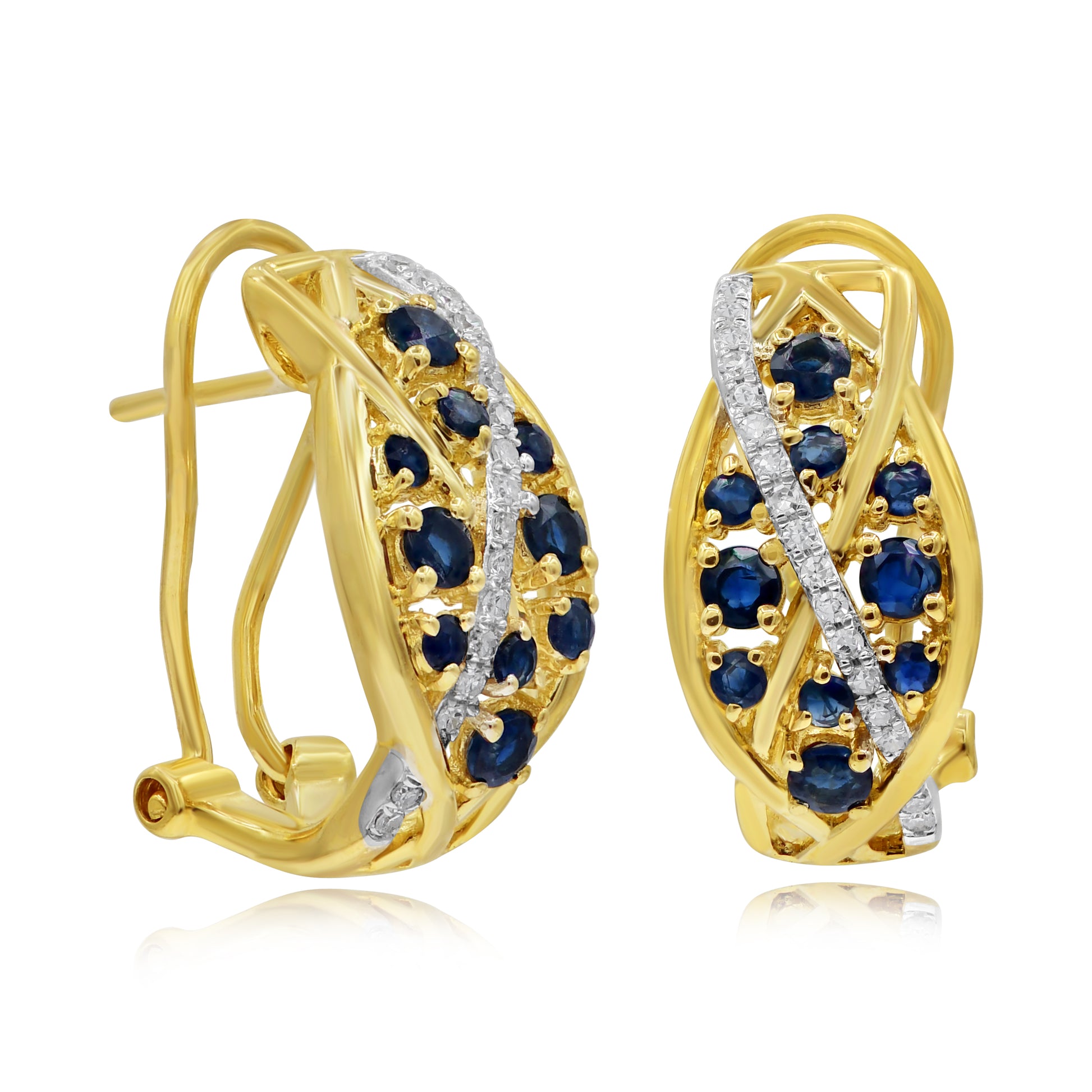 0.79 ct. Sapphire & 0.14 ct. Diamond 14K Yellow Gold Huggie Earrings