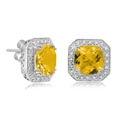 3.47 ct. Citrine & 0.12 ct. Diamond 14K Yellow Gold Stud Earrings