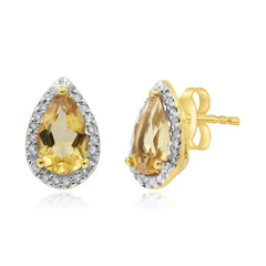 1.52 ct. Citrine & 0.11 ct. Diamond 14K Yellow Gold Pushback Earrings