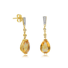 3.17 ct. Citrine & 0.04 ct. Diamond 14K Yellow Gold Dangling Pushback Earrings