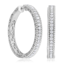 1.43 ct. Diamond 18K White Gold Hoop Earrings