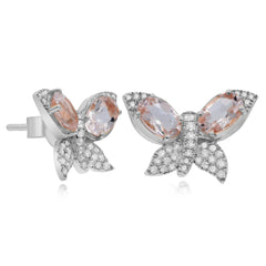 1.47 ct. Morganite & 0.23 ct. Diamond 14K White Gold Butterfly Stud Earrings