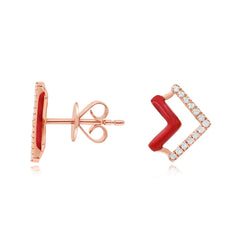 0.1 ct. Diamond 14K Rose Gold Red Enamel Arrow Pushback Earrings