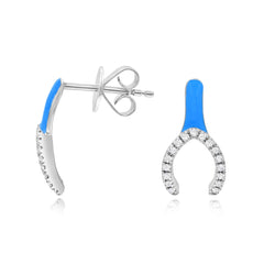 0.1 ct. Diamond 14K White Gold Blue Enamel Wishbone Stud Earrings