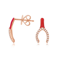 0.1 ct. Diamond 14K Rose Gold Red Enamel Wishbone Stud Earrings