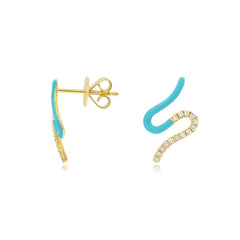 0.1 ct. Diamond 14K Yellow Gold Turquoise Enamel Wave Pushback Earrings
