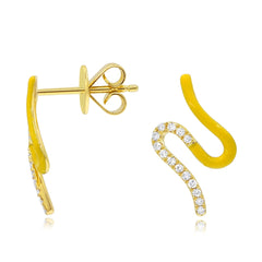 0.1 ct. Diamond 14K Yellow Gold Yellow Enamel Wave Pushback Earrings