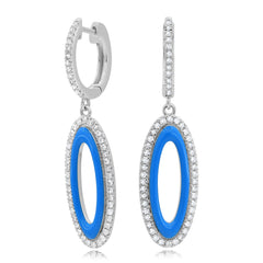 0.52 ct. Diamond 14K White Gold Blue Enamel Oval Huggie Earrings