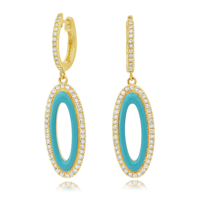 0.52 ct. Diamond 14K Yellow Gold Turquoise Enamel Oval Huggie Earrings