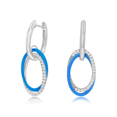 0.24 ct. Diamond 14K White Gold Blue Enamel Double Interlocking Ovals Huggie Earrings