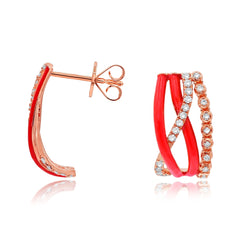 0.33 ct. Diamond 14K Rose Gold Red Enamel Crisscross Wave Pushback Earrings
