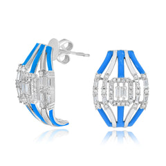 0.75 ct. Diamond 14K White Gold Blue Enamel Cuff Stud Earrings