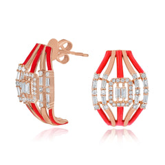 0.76 ct. Diamond 14K Rose Gold Red Enamel Cuff Stud Earrings