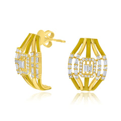 0.76 ct. Diamond 14K Yellow Gold Yellow Enamel Cuff Stud Earrings
