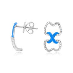 0.55 ct. Diamond 14K White Gold Blue Enamel Crisscross Earrings