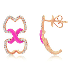 0.55 ct. Diamond 14K Rose Gold Pink Enamel Crisscross Earrings