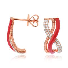 0.35 ct. Diamond 14K Rose Gold Red Enamel Crisscross Infinity Pushback Earrings