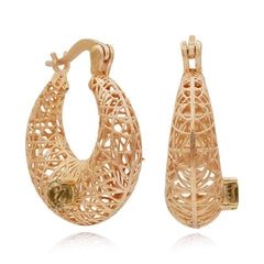 0.5 ct. Quartz 14K Yellow Gold Textured Openwork 3D Filigree Hoop Earrings