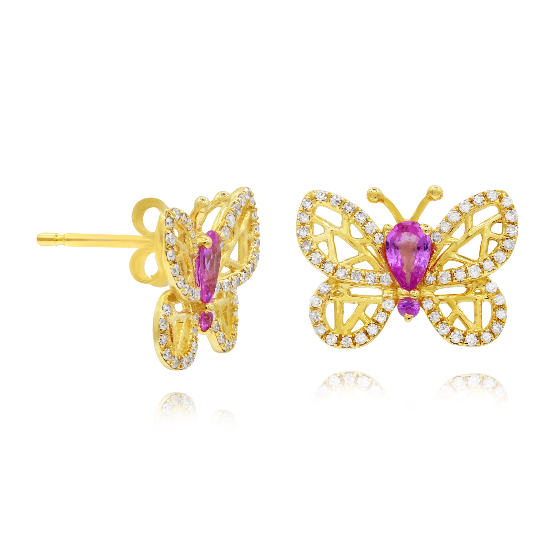 0.55 ct. Sapphire & 0.27 ct. Diamond 14K Yellow Gold Butterfly Stud Earrings